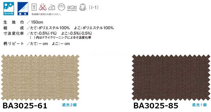 BA3025-61(レース:BB4108-03)SUN SHUT 遮光カーテンBA3025⇒ 厚地+レースのお買い得セット:オーダーカーテン 約2倍ヒダへ⇒ オーダーカーテン 約2倍ヒダへ⇒ オーダーカーテン 約1.5倍ヒダへ⇒ プレーンシェード コード式へご希望製品・サイズに応じた価格をクリックしてください。